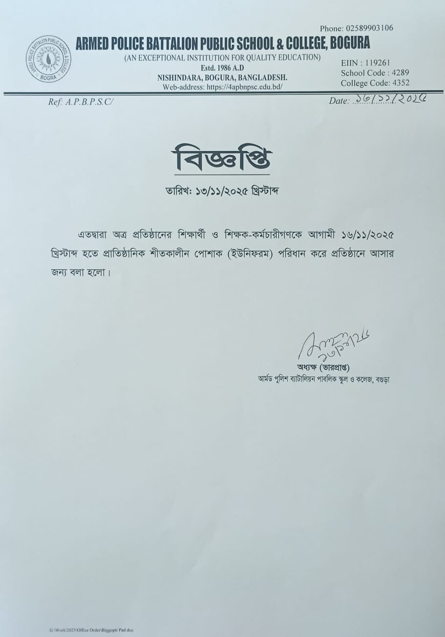 শীতকালীন পোশাক পরিধান সম্পর্কে বিজ্ঞপ্তিby dhakaNovember 13, 2025 Download/View previous১৫.১১.২০২৫ খ্রিস্টাব্দের ক্লাস পার্টি স্থগিতnextভর্তি ফরম (কেজি, প্রথম, তৃতীয়, চতুর্থ, পঞ্চম, ষষ্ঠ, সপ্তম ও অষ্টম শ্রেণির জন্য)