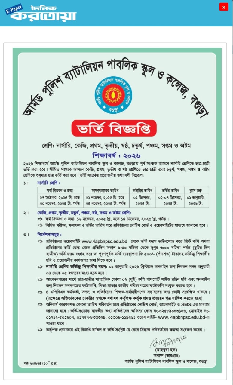 ২০২৬ শিক্ষাবর্ষে ভর্তি বিজ্ঞপ্তিby dhakaOctober 27, 2025 View/Download previousনিয়োগ বিজ্ঞপ্তি- ২০২৫next২০২৬ শিক্ষাবর্ষে ভর্তি ফরম