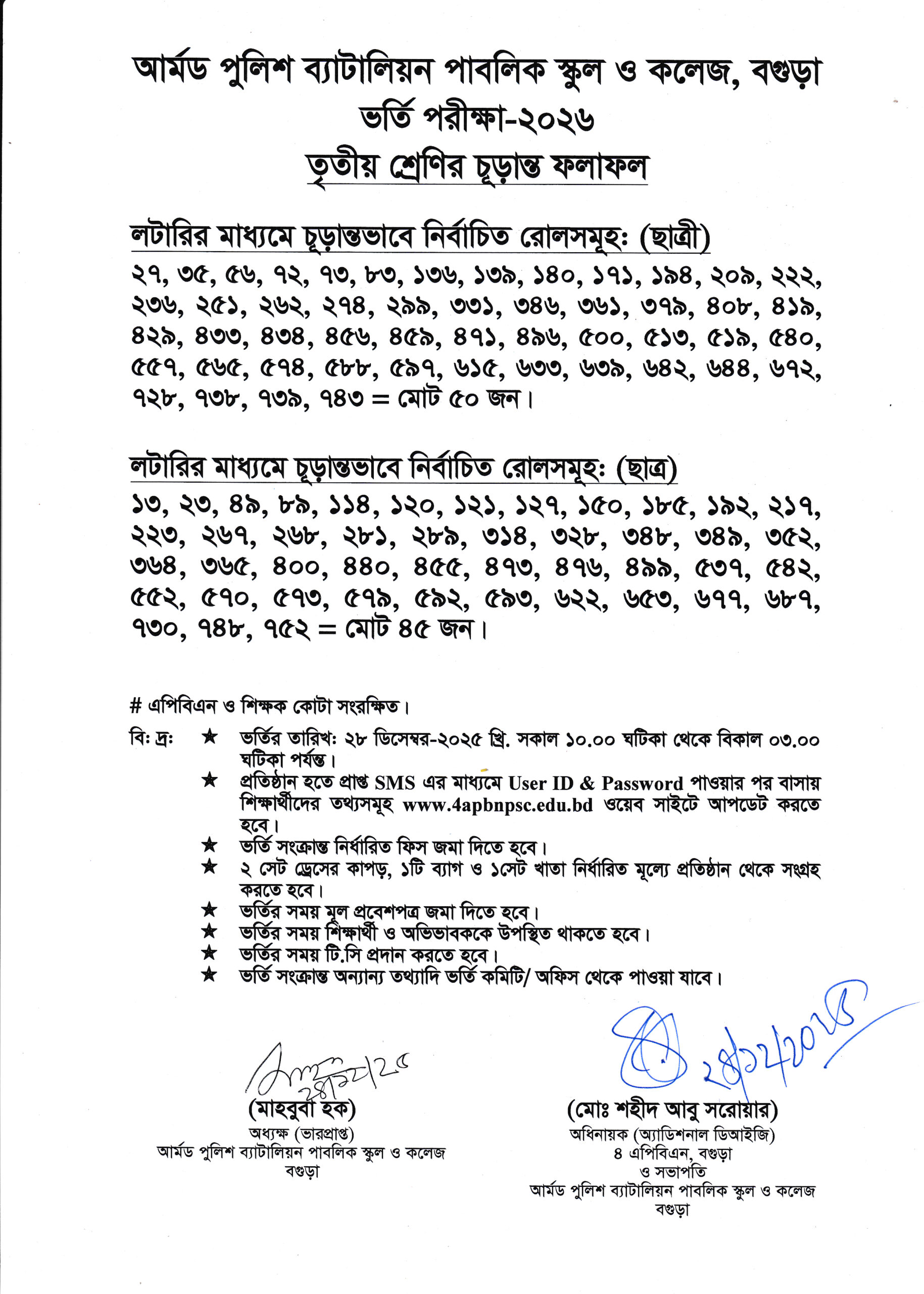 ৩য় শ্রেণির ভর্তি পরীক্ষার চূড়ান্ত ফলাফল-২০২৬by dhakaDecember 24, 2025 Download/View previous৩য় শ্রেণির পরীক্ষার্থীদের প্রাথমিক বাছাইয়ের ফলাফল-২০২৬nextকেজি, ১ম, ৪র্থ ও ৫ম শ্রেণির প্রাথমিক বাছাইয়ের ফলাফল